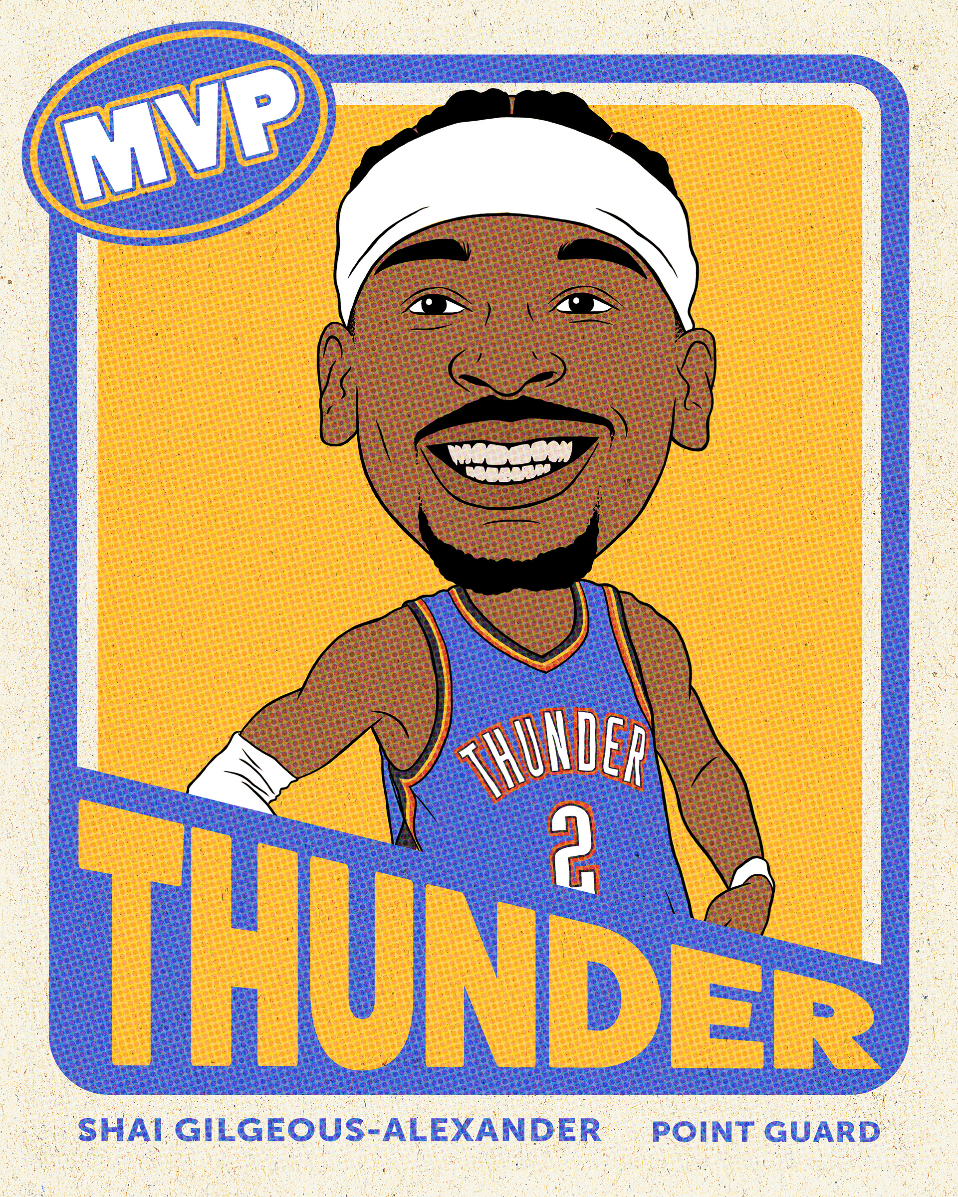 During the 2025 NBA playoffs, I come up with a concept to create a series of throwback caricature style trading cards, using the star players of each playoff team. The collection was complete with custom 1 of 1 collectors cases.