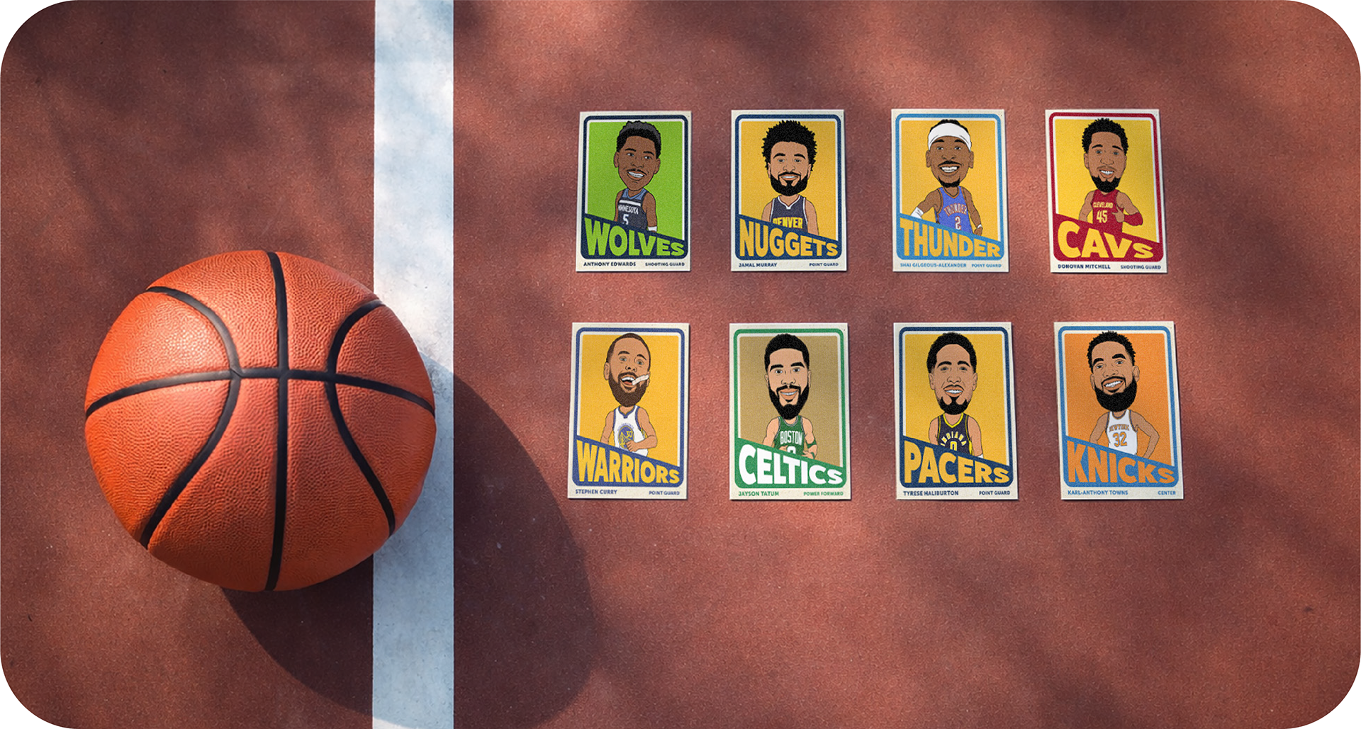 During the 2025 NBA playoffs, I come up with a concept to create a series of throwback caricature style trading cards, using the star players of each playoff team. The collection was complete with custom 1 of 1 collectors cases.
