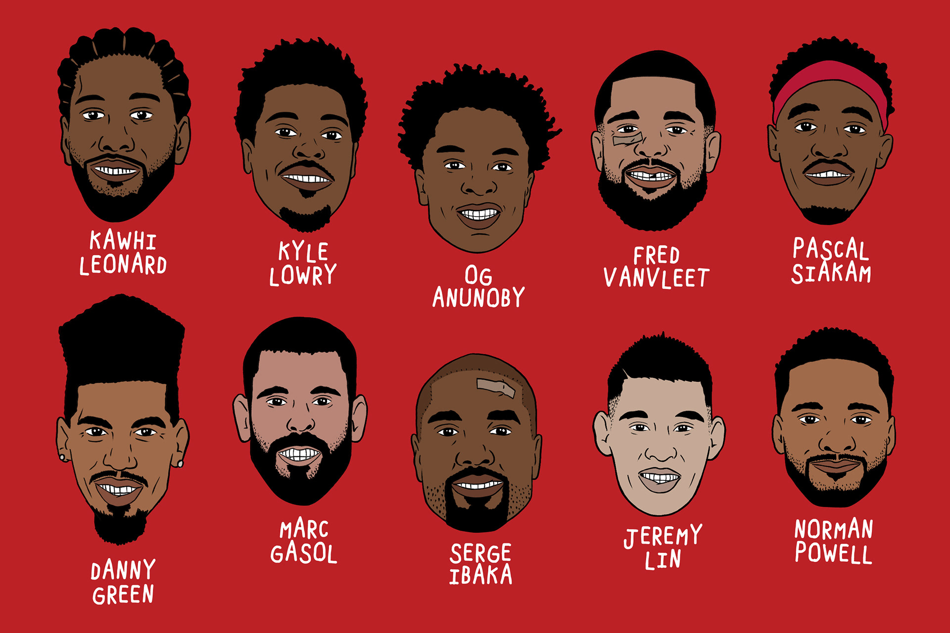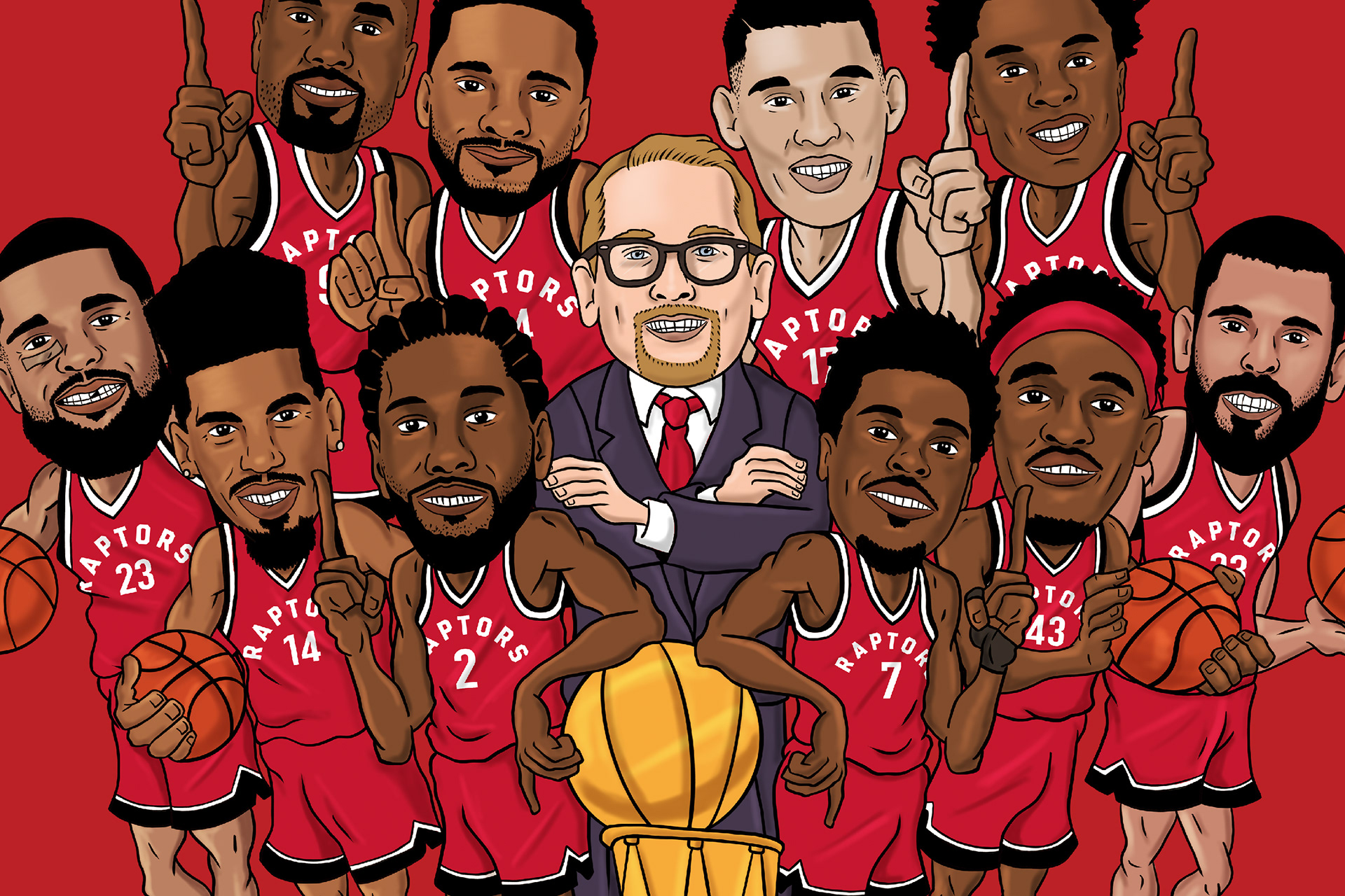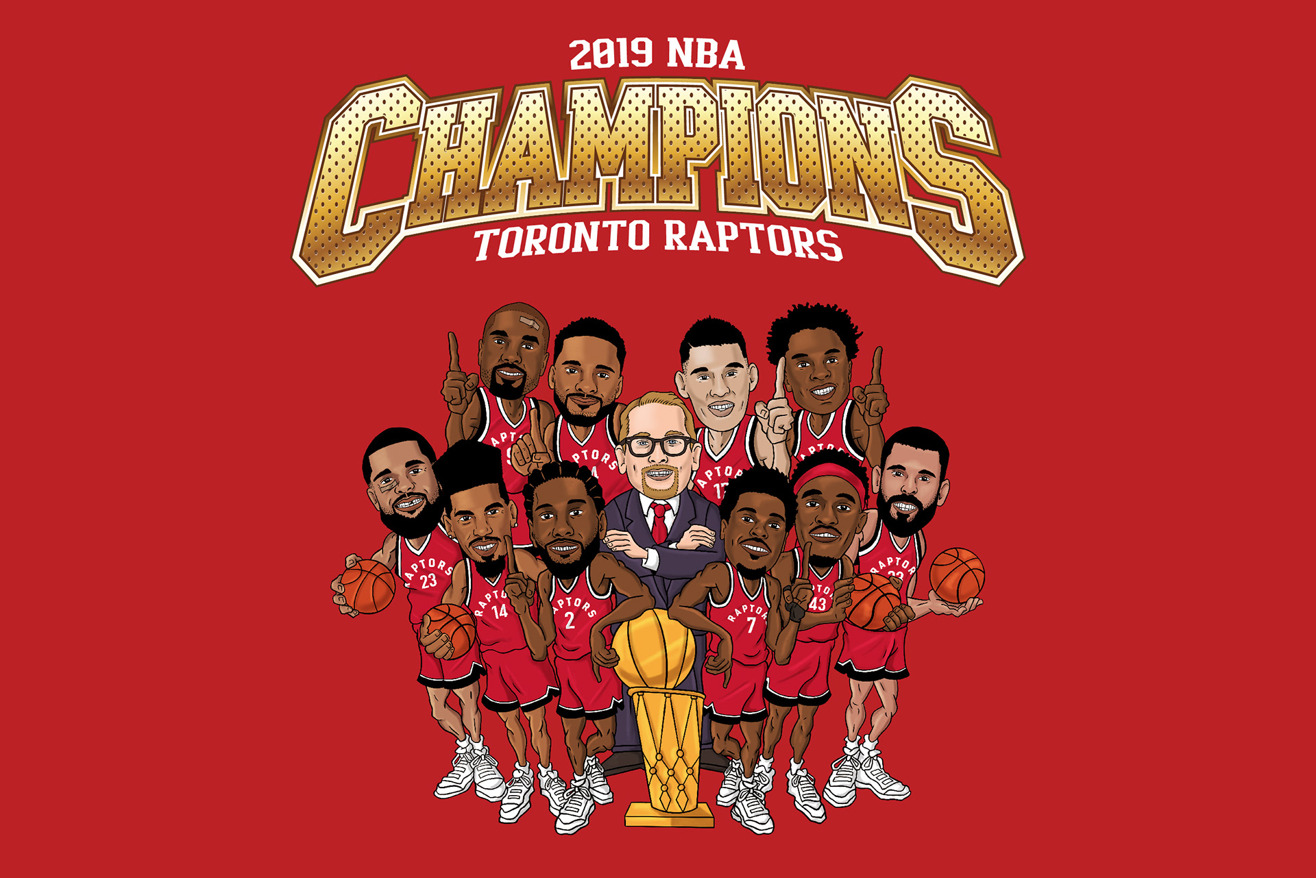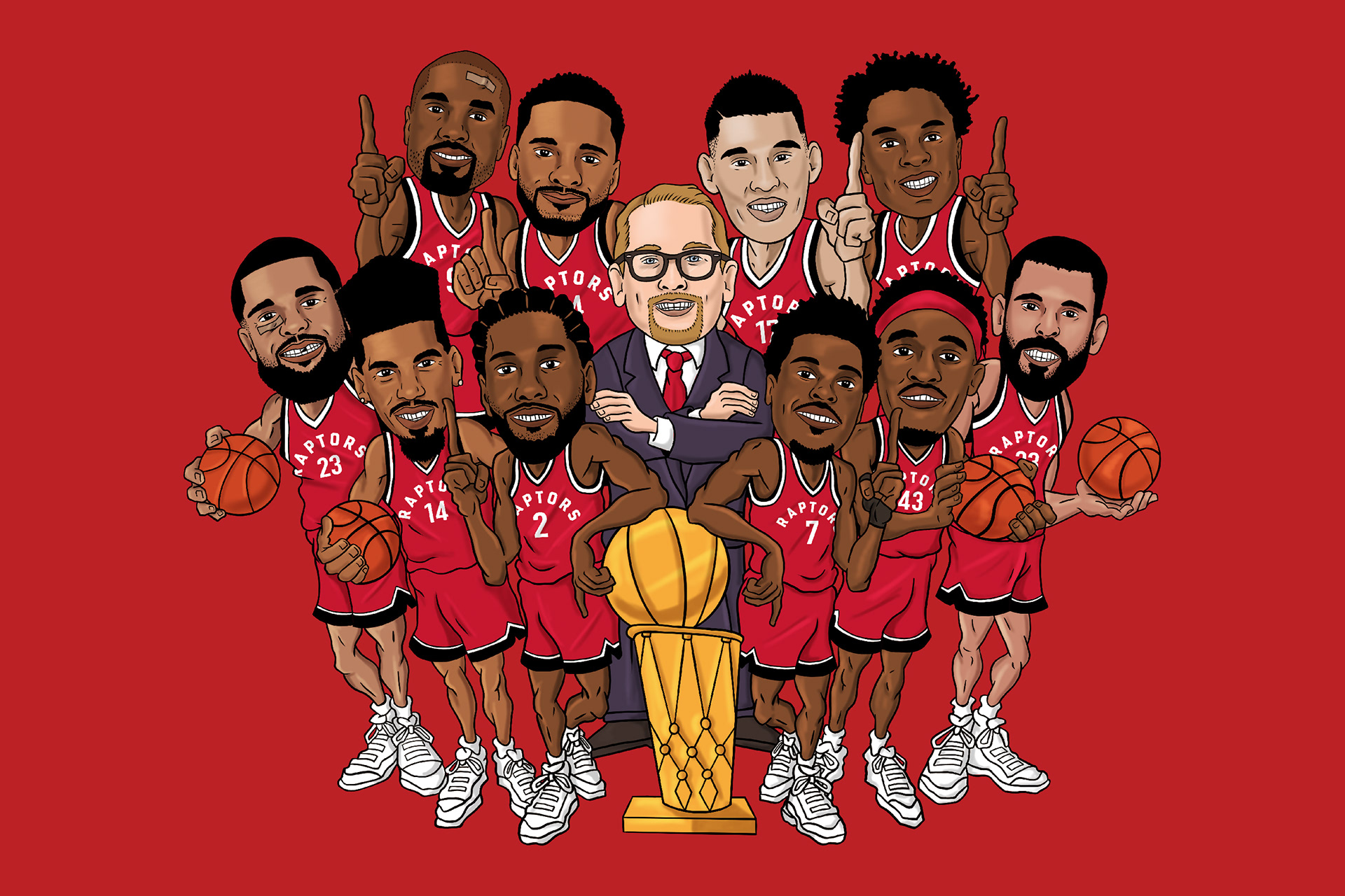 In celebration of the Toronto Raptors first ever NBA Championship, I designed these caricatures of the team, complete with a few bumps and bruises!